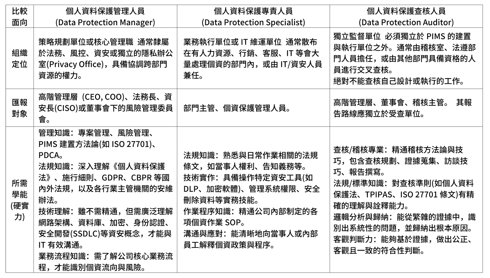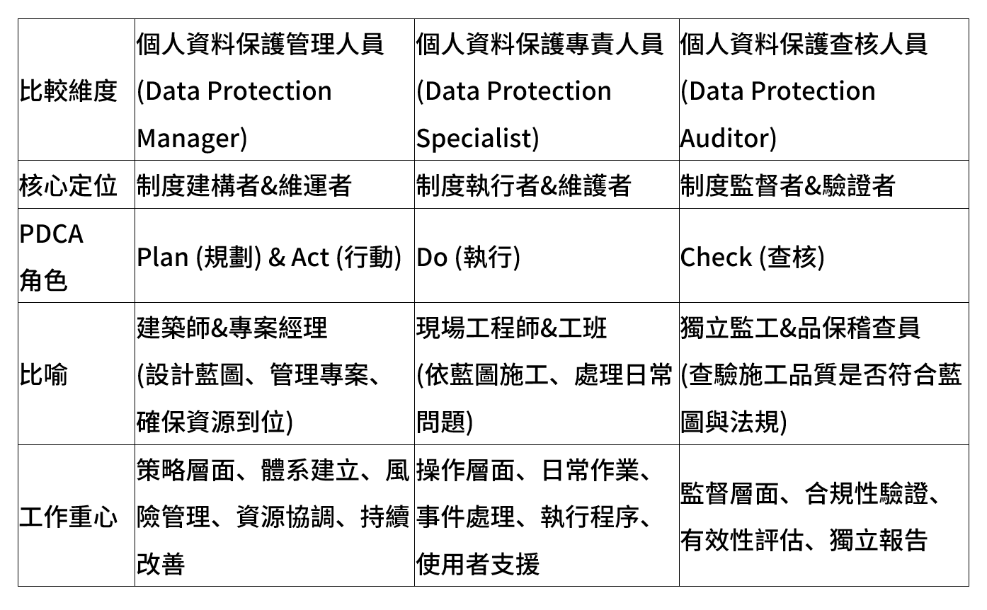 【深度解析】企業個資保護鐵三角:專責、管理、查核人員到底差異在哪?(中)